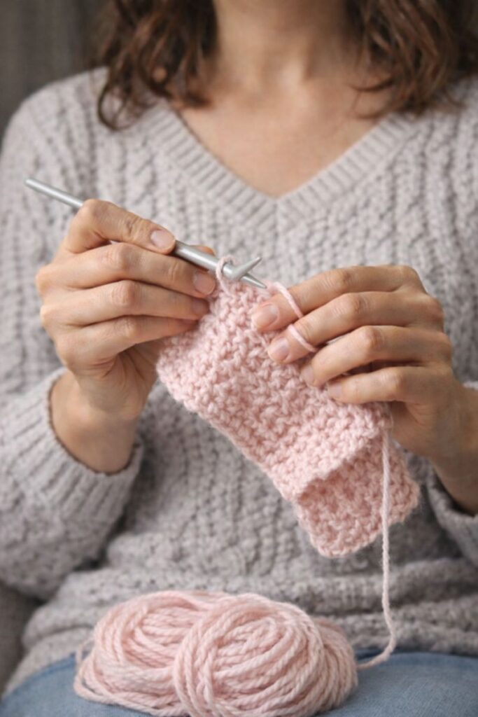 Handmade Pink Knit Wrist Warmers with Lace Bow
