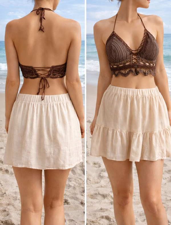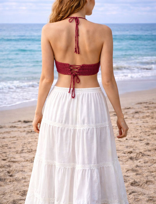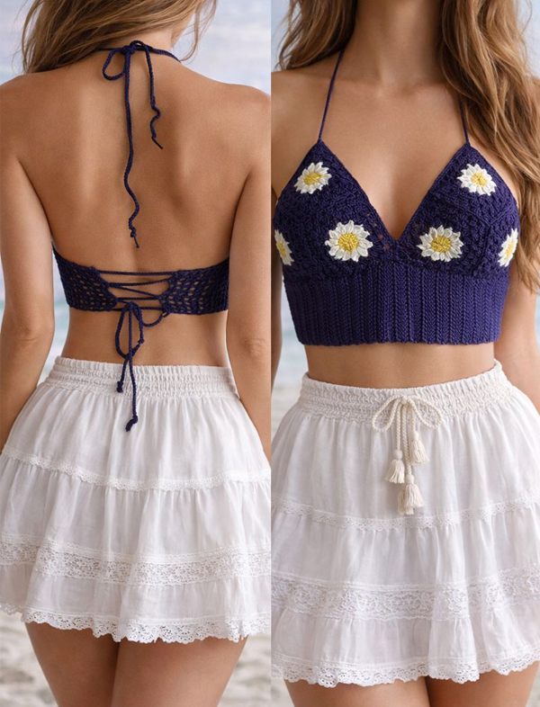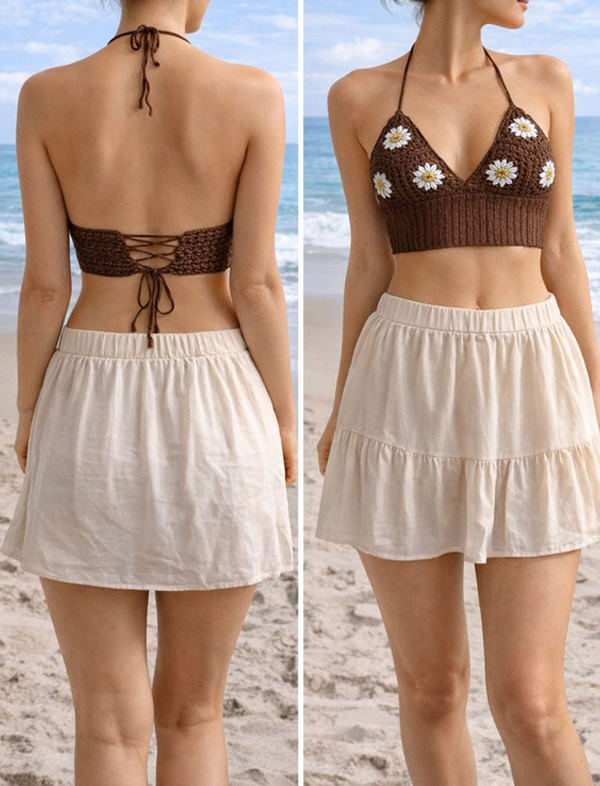 Sunset Stripes Crochet Set (Crop Top + Skirt) – Kids